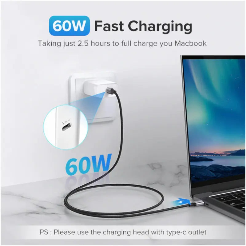 - 60W Carga Rápida: Cable USB tipo C admite la carga rápida de PD hasta 60W (20V 3A), permite cargar sus portatiles, tabletas, teléfonos y otros con puerto USB C. Carga iPhone 16 de 0% a 60% en 30 minutos
