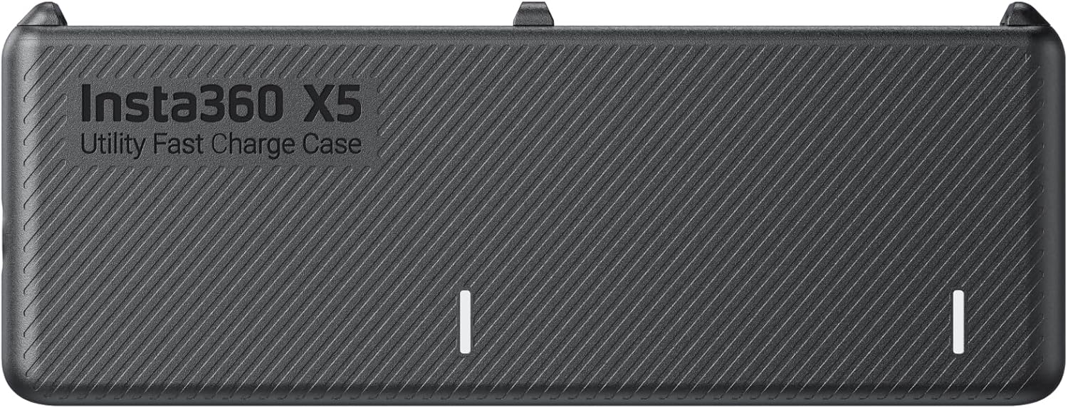 El estuche Utility Fast-Charge de Insta360 permite cargar dos baterías X5 en cualquier lugar mediante un cable USB-C integrado y una fuente de alimentación externa, como un adaptador de CA o una batería portátil. Puede cargar una batería al 80 % en tan solo 28 minutos o cargar dos baterías simultáneamente.