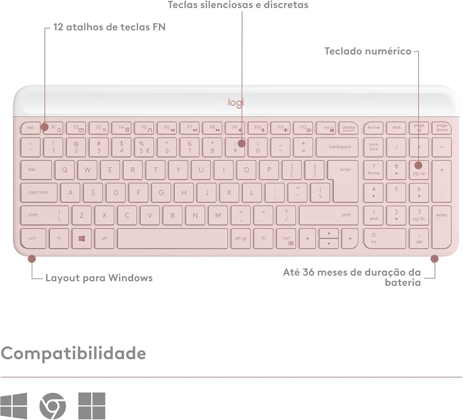 TECLADO Y MOUSE SLIM COMBO INALAMBRICO MK470 ROSA