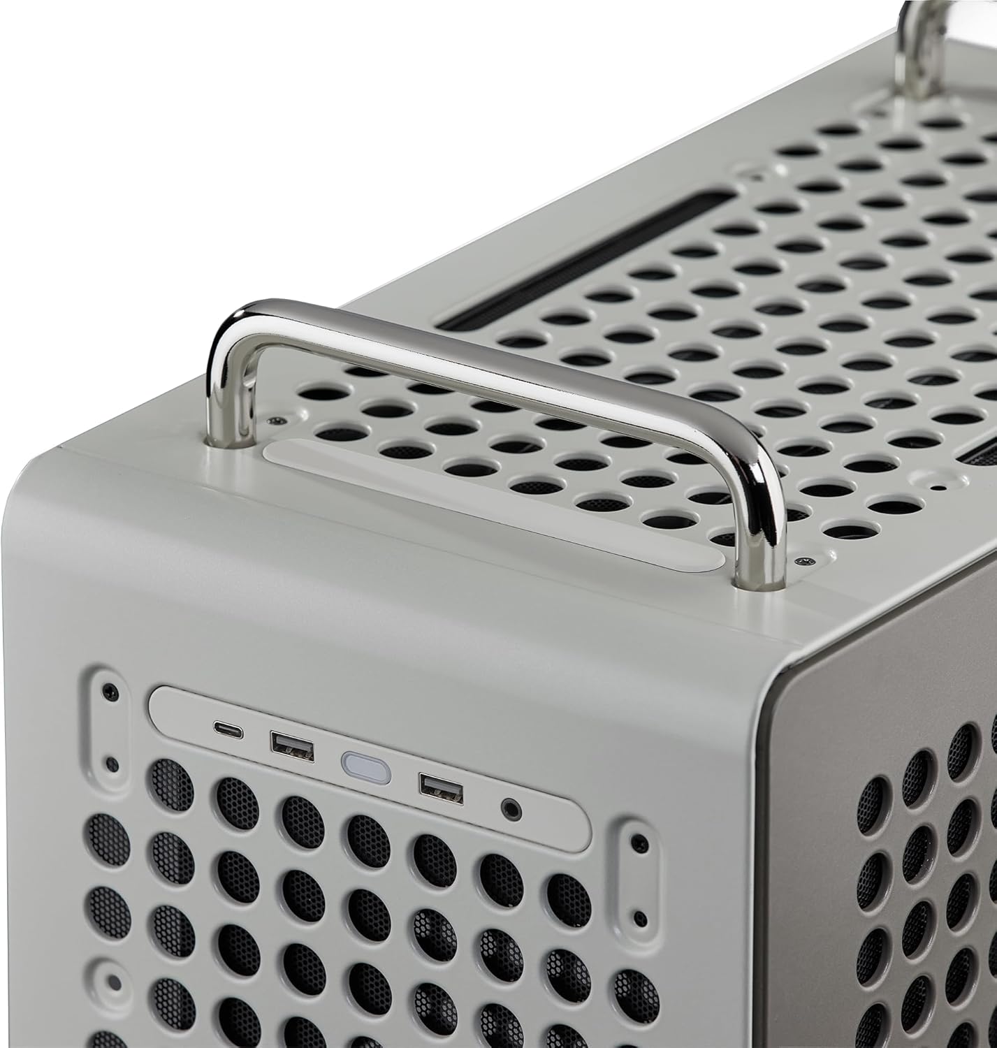 - Diseño de orientación flexible – Diseñado para funcionar sin problemas tanto en posiciones horizontales como verticales, con un panel de E/S reversible y asas móviles que te permiten personalizar el diseño, mejorar la accesibilidad y reposicionar la carcasa sin esfuerzo.