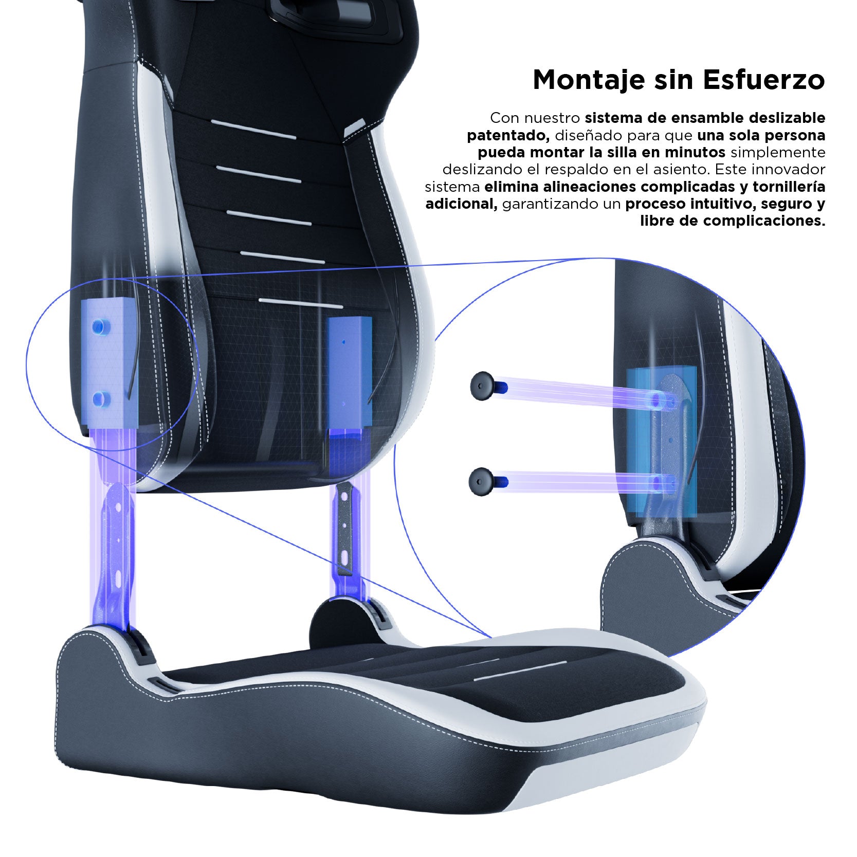 Nuestro hardware "deslizante" patentado permite un montaje rápido y fácil para una sola persona.
