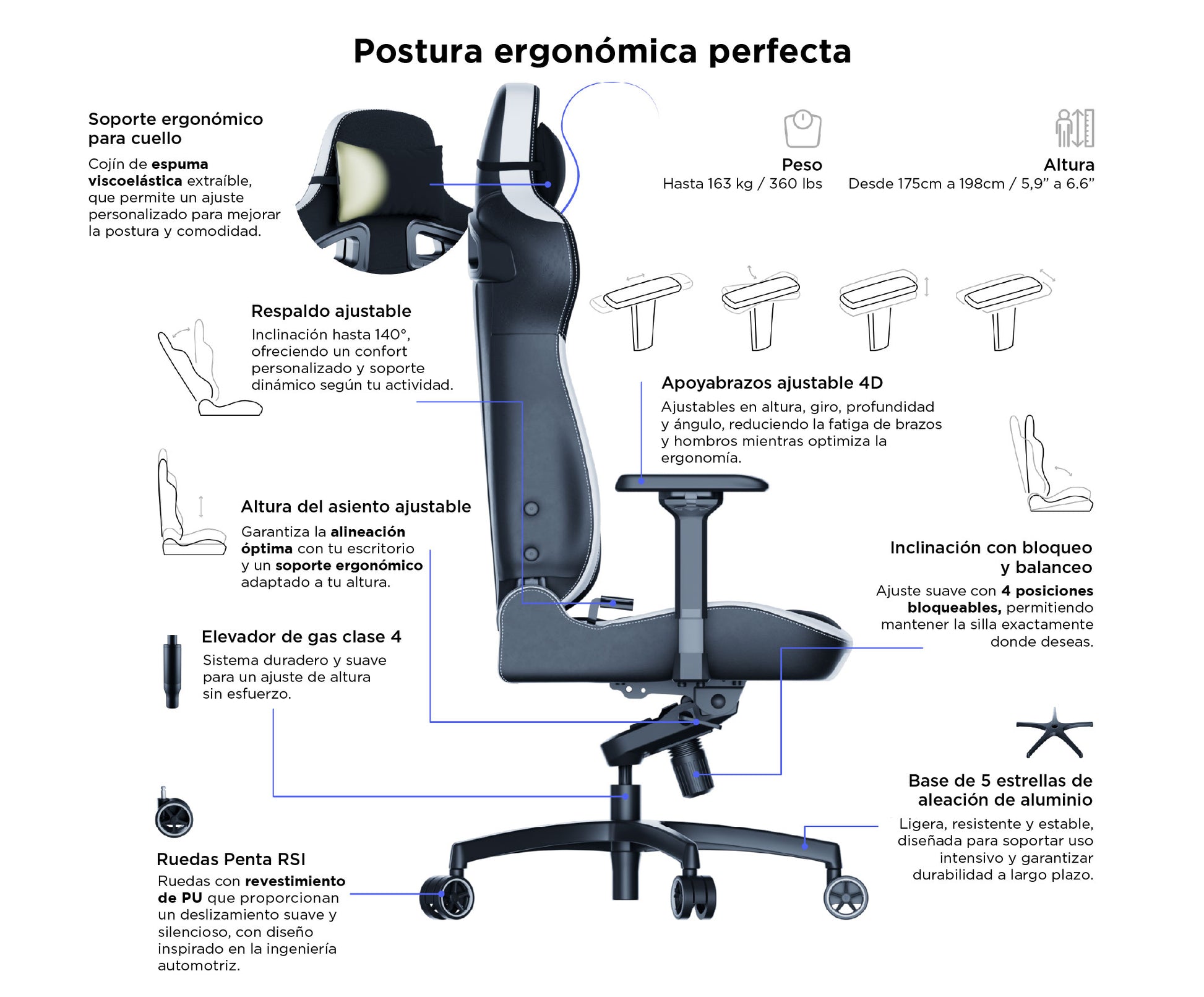 Peso: Hasta 360lbs