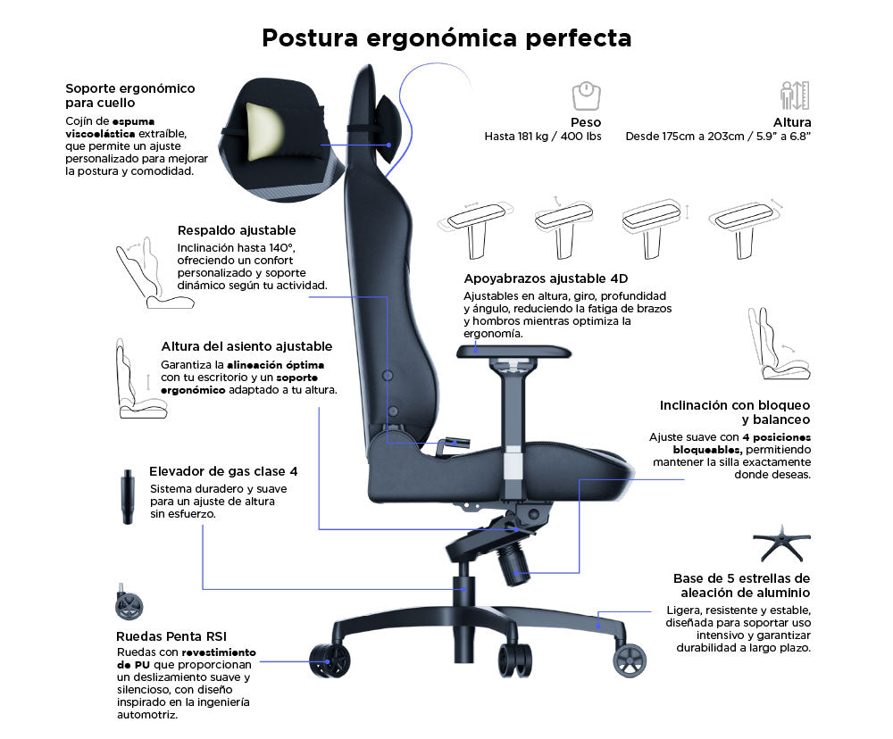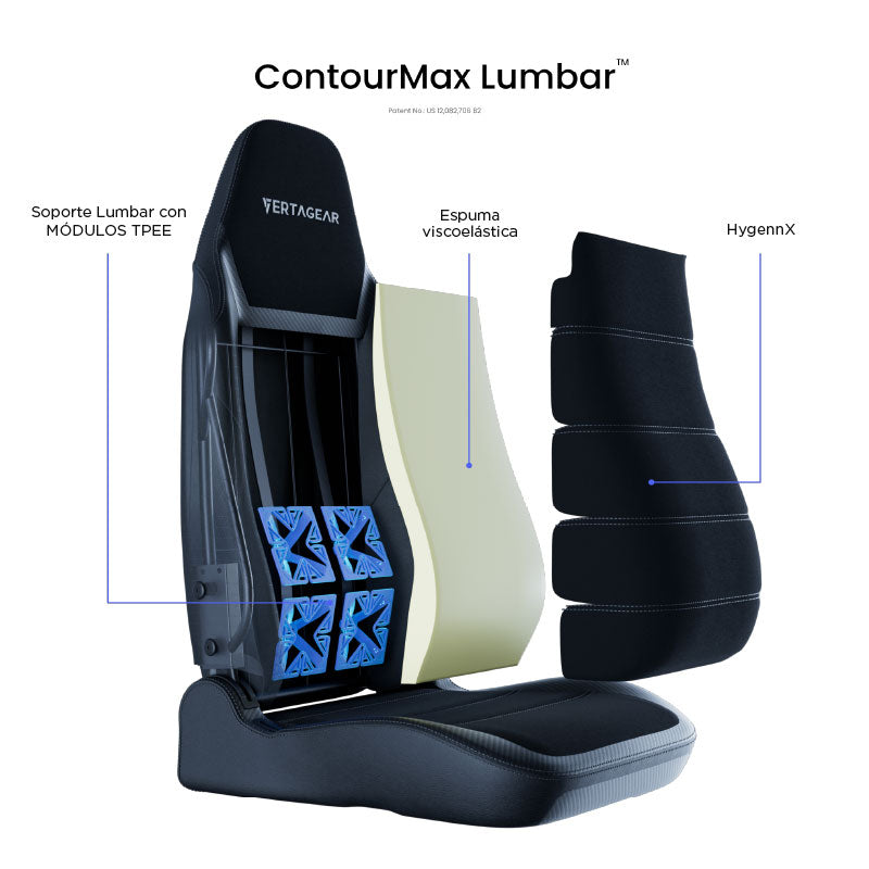 ¿Qué pasaría si pudieras prevenir el dolor de espalda antes de que se convierta en un problema? Nuestro nuevo ContourMax TM Lumbar integrado en el respaldo funciona como magia, adaptándose a su cuerpo para apoyar una postura saludable mientras juega o trabaja durante incontables horas. La prevención es mejor que el tratamiento.