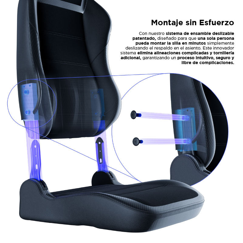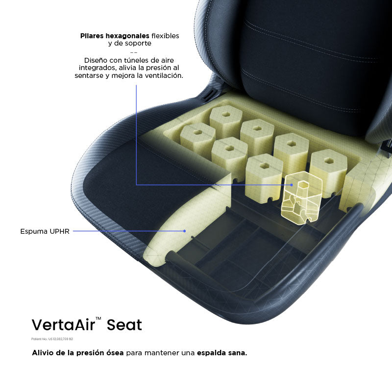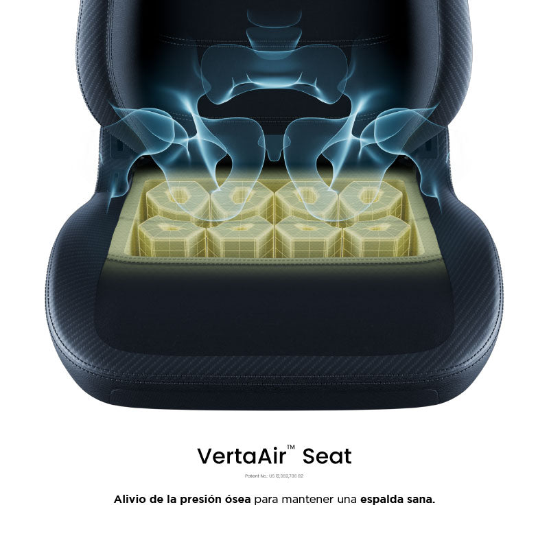 Si está luchando con la tensión y la incomodidad de la silla de juego tradicional, entendemos su dolor. Nuestro asiento VertaAir TM pendiente de patente es un concepto nuevo que resuelve los principales problemas que afectan a las sillas tradicionales. Una de las principales causas del dolor de espalda es la presión gravitatoria que no se distribuye y libera uniformemente cuando se está sentado durante horas prolongadas. El acolchado de nuestro asiento está inspirado en el principio de Bernoulli para general un levantamiento aerodinámico que puede negar la presión gravitacional de manera uniforma en la espalda y los gluteos.