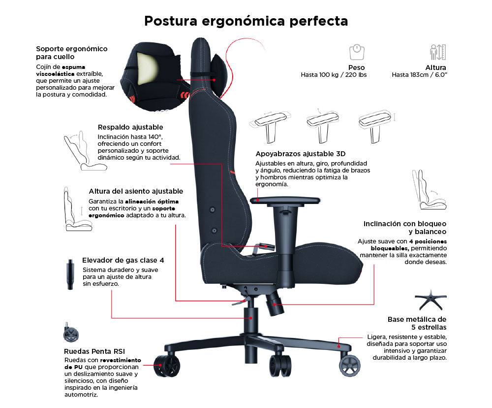 | Altura de usuario recomendada | Desde 160cm a 183cm |